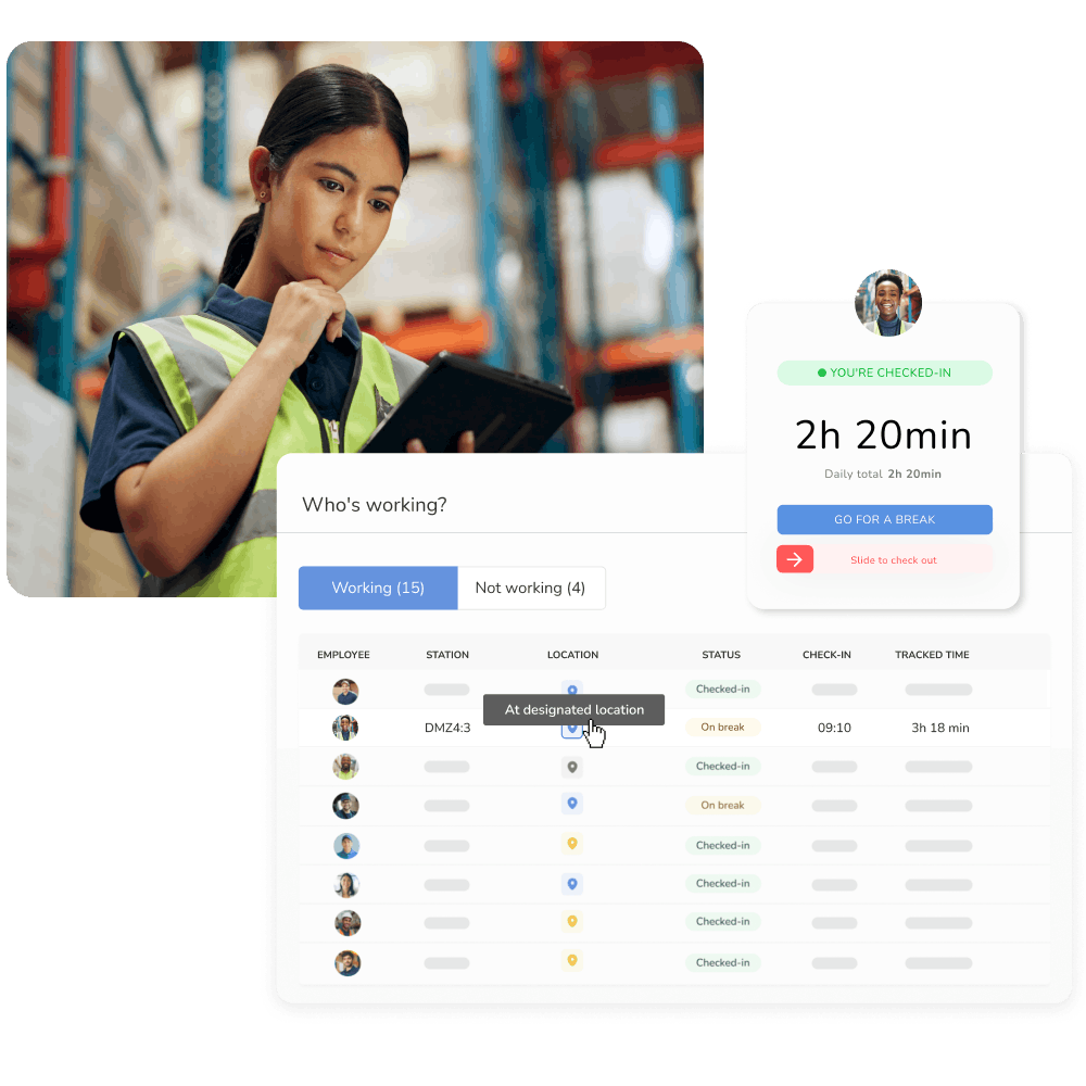 Track hours worked in real time, with compliant, automatic records and smart automations.