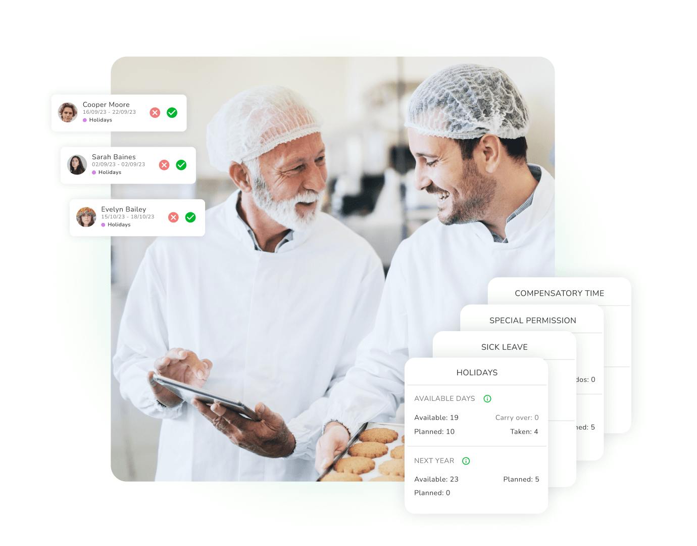 High absenteeism rates are not an uncommon issue for frontline employees. We help to enable managers and staff to digitally process leave days, absences and time recording.