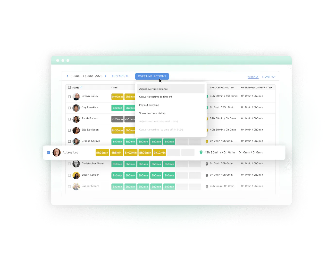 Effortless and accurate employee time tracking. Manage timesheets, hours worked, overtime and absences with a simple click. Every employee counts.