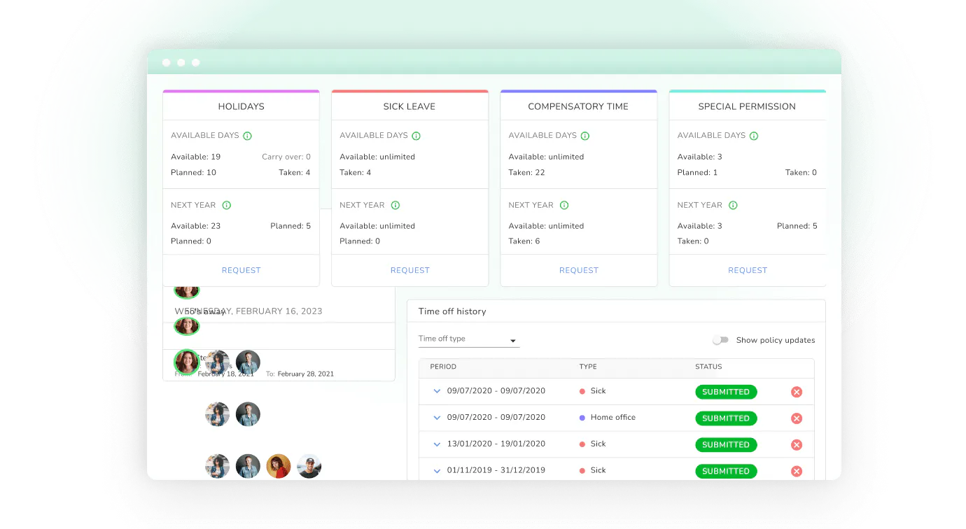 Enable your managers and employees to manage their own vacations, sick leave, and other absences with minimal effort and zero papers.