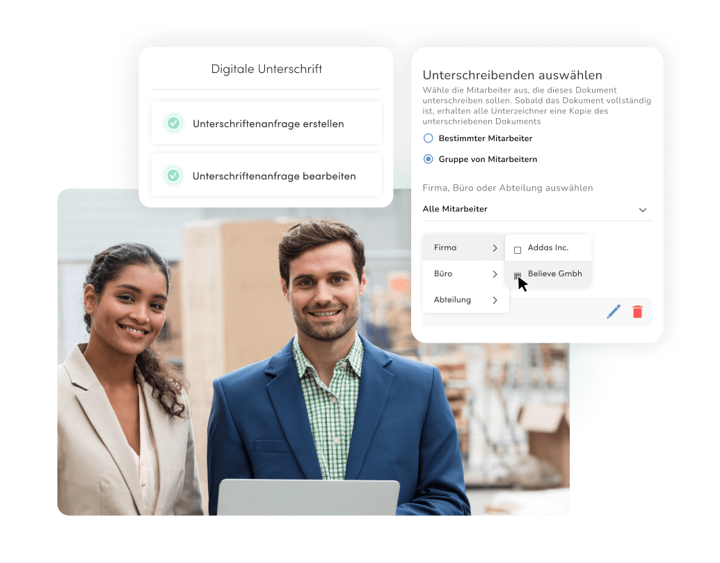 Dank unserer integrierten HR-Kommunikation können Sie E-Mails und Anrufe deutlich reduzieren, indem Sie direkt aus der Software Dokumente anfordern und teamweit verteilen.