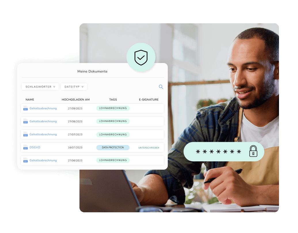 Unsere Digital Personalakte gewährleistet DSGVO-Konformität und bietet einen sicheren, passwortgeschützten Zugang für alle Nutzer.