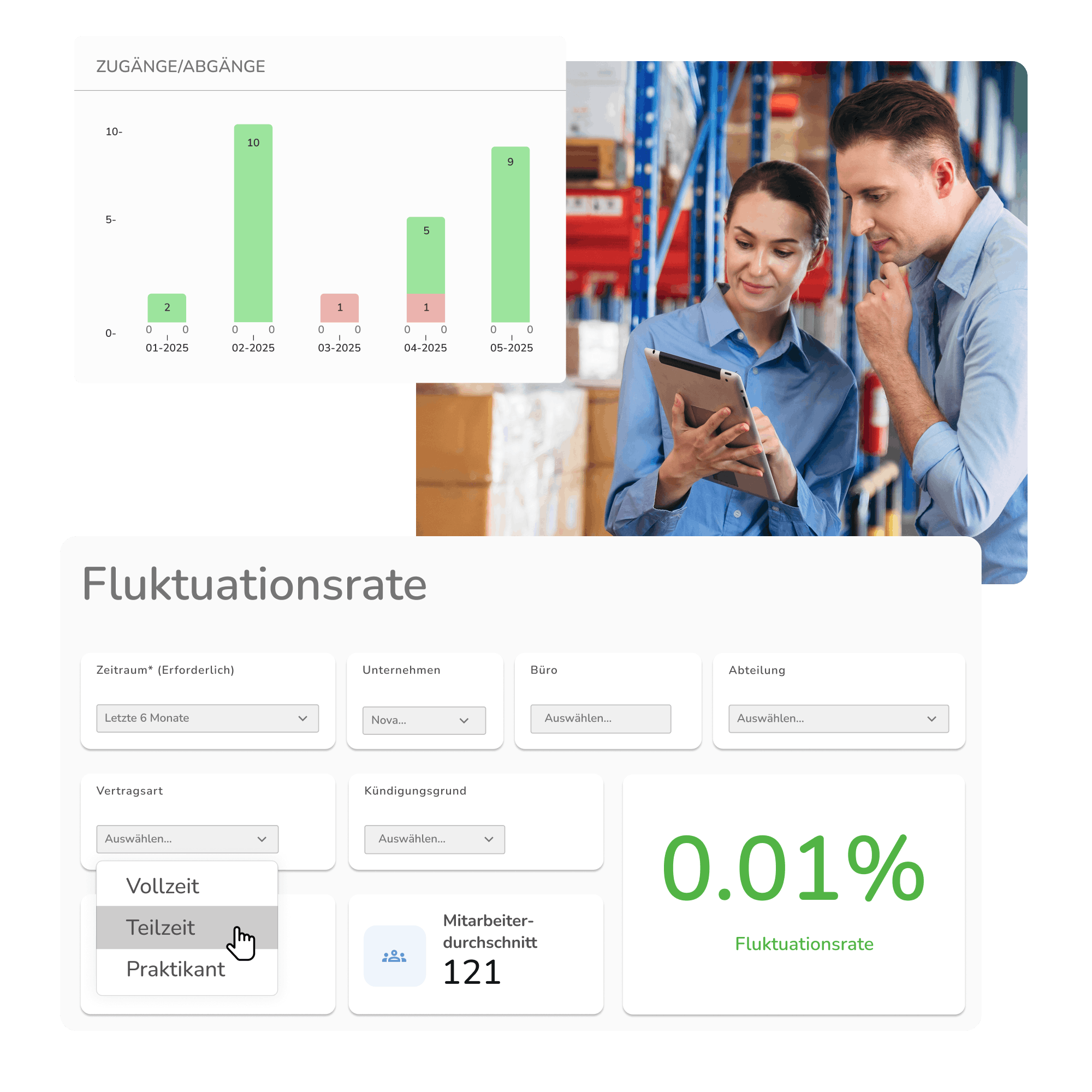 Erkenne Probleme frühzeitig – mit Berichten über Arbeitsstunden, Abwesenheiten, No-Shows und Fluktuation.