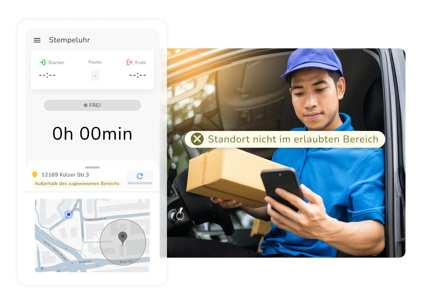 Fahrer stempeln sich per Handy oder Kiosk ein. Du siehst in Echtzeit, wer eingecheckt hat – und von wo. Kein Papier, kein Nachverfolgen.