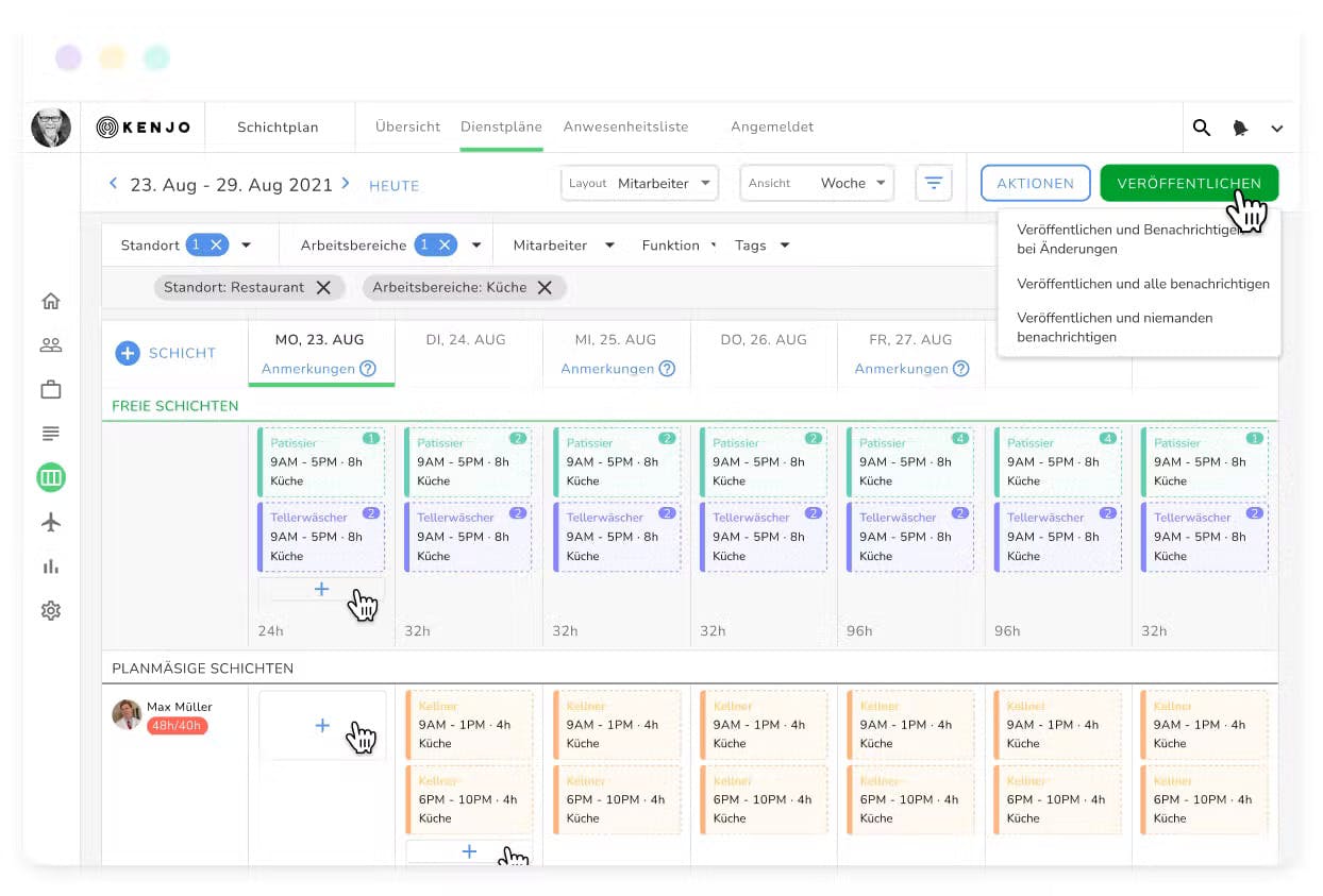 Erstelle auf Dein Personal zugeschnittene Schicht- und Dienstpläne – inklusive verschiedener Unternehmensstandorte, Maschinenarbeitsplätze, begrenzten Verfügbarkeiten oder aber Wunschtagen Deiner Mitarbeiter.