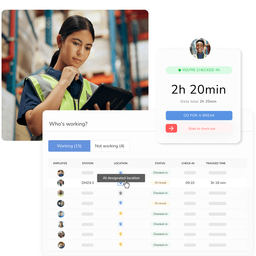 Erfasse Arbeitszeiten in Echtzeit – mit einfachen Ein- und Ausstempel-Optionen für Deine Mitarbeiter.