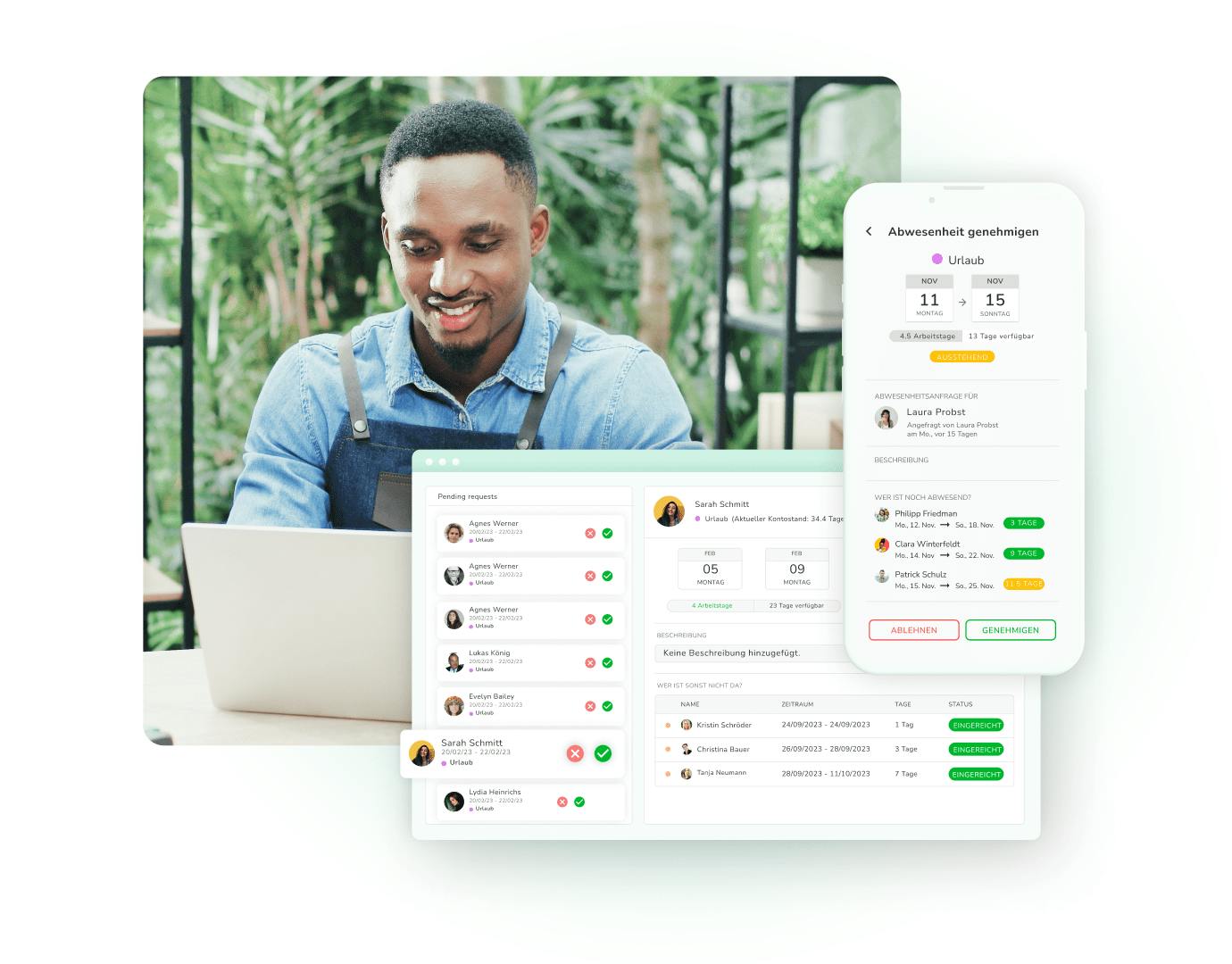 Urlaubsanträge und Krankmeldungen werden digital bearbeitet, sodass Du immer weißt, wer verfügbar ist.