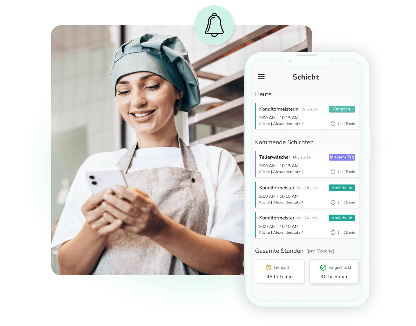 Schreibtischplätze sind in der Gastronomie eine seltenheit. Mit der Kenjo App haben Deine Mitarbeitenden jederzeit Zugriff auf ihre Schichten, können Arbeitszeiten erfassen und Abwesenheiten beantragen – alles bequem vom Smartphone aus, ohne Papierkram oder zusätzliche Computer.