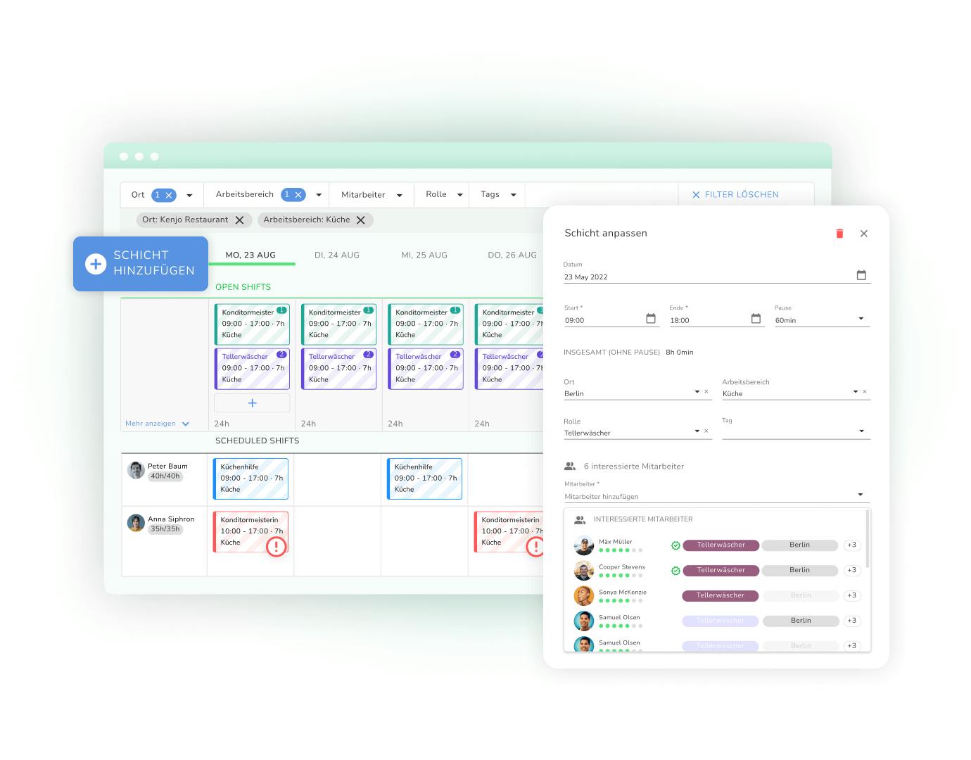 Mit dem Schichtplan kannst du alle verfügbaren Mitarbeiter in der Schule sehen, von Köchen, Wartungspersonal, Reinigungspersonal bis hin zu Lehrerstellen.