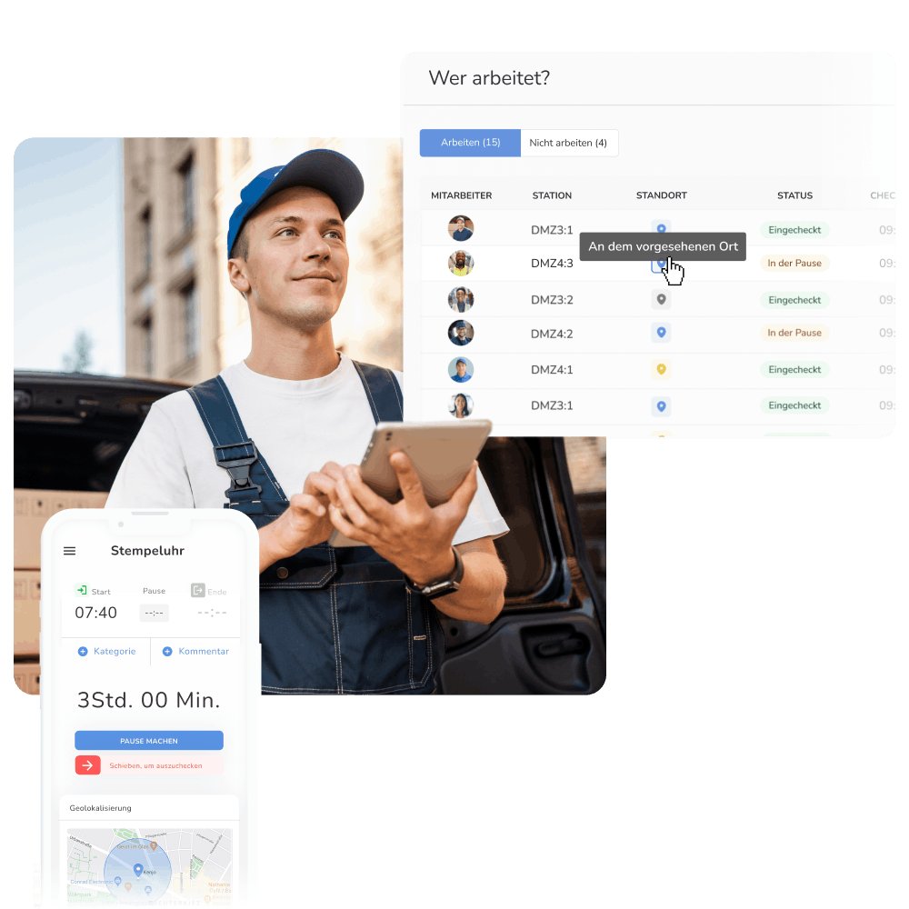 Exakte Zeiterfassung für Außendienst, Handel & Service
