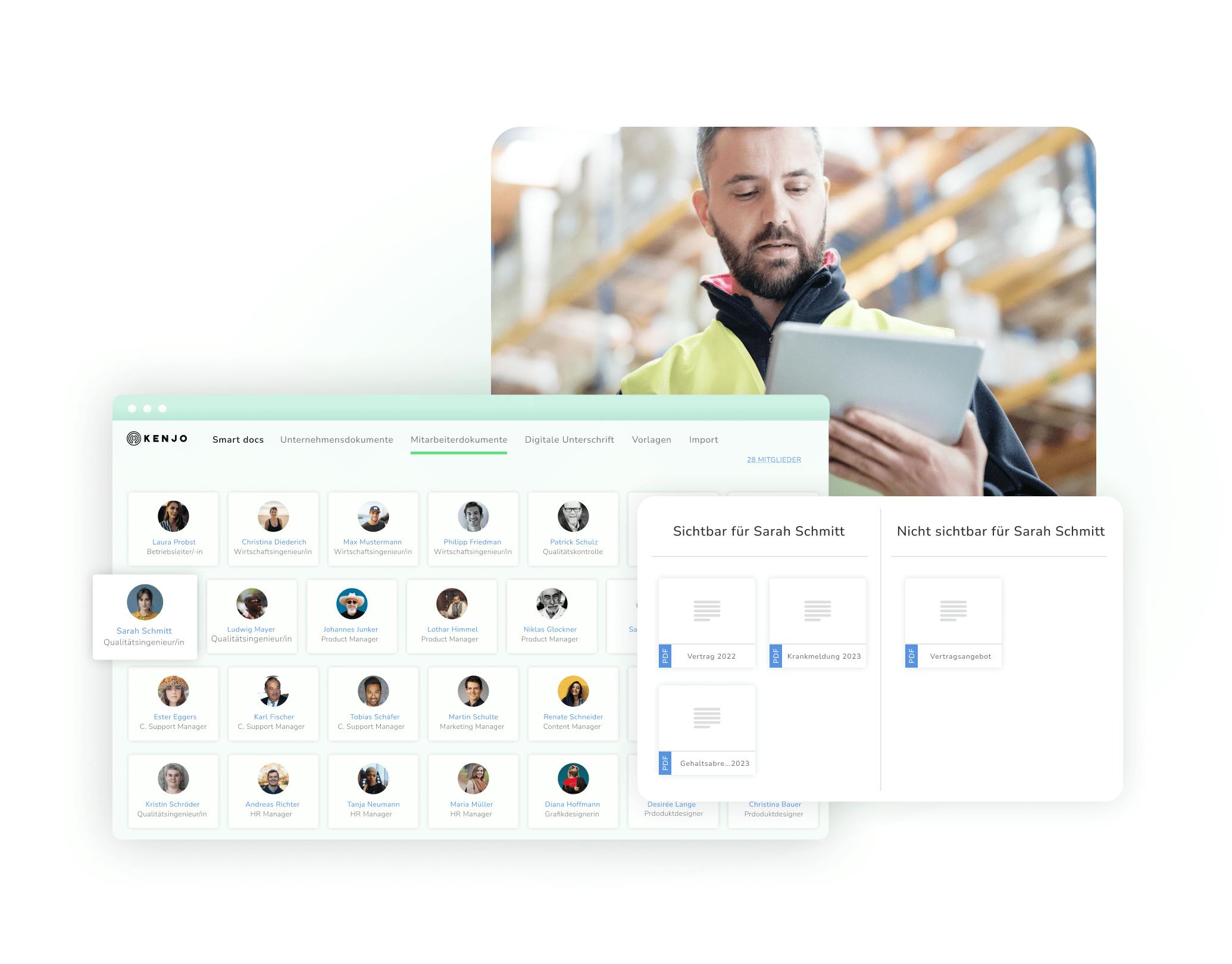Zeit sparen: Excel-Dateien sind oft nur für die Personalabteilung zugänglich, was die Personalverwaltung ineffizient macht. Das HR-Team muss manuell Anfragen bearbeiten und Informationen aus verschiedenen Quellen in Excel übertragen. Mit Kenjos digitaler Personalakte können Mitarbeitende ihre Daten selbst aktualisieren, sodass dem HR-Team mehr Zeit für strategische Aufgaben bleibt.