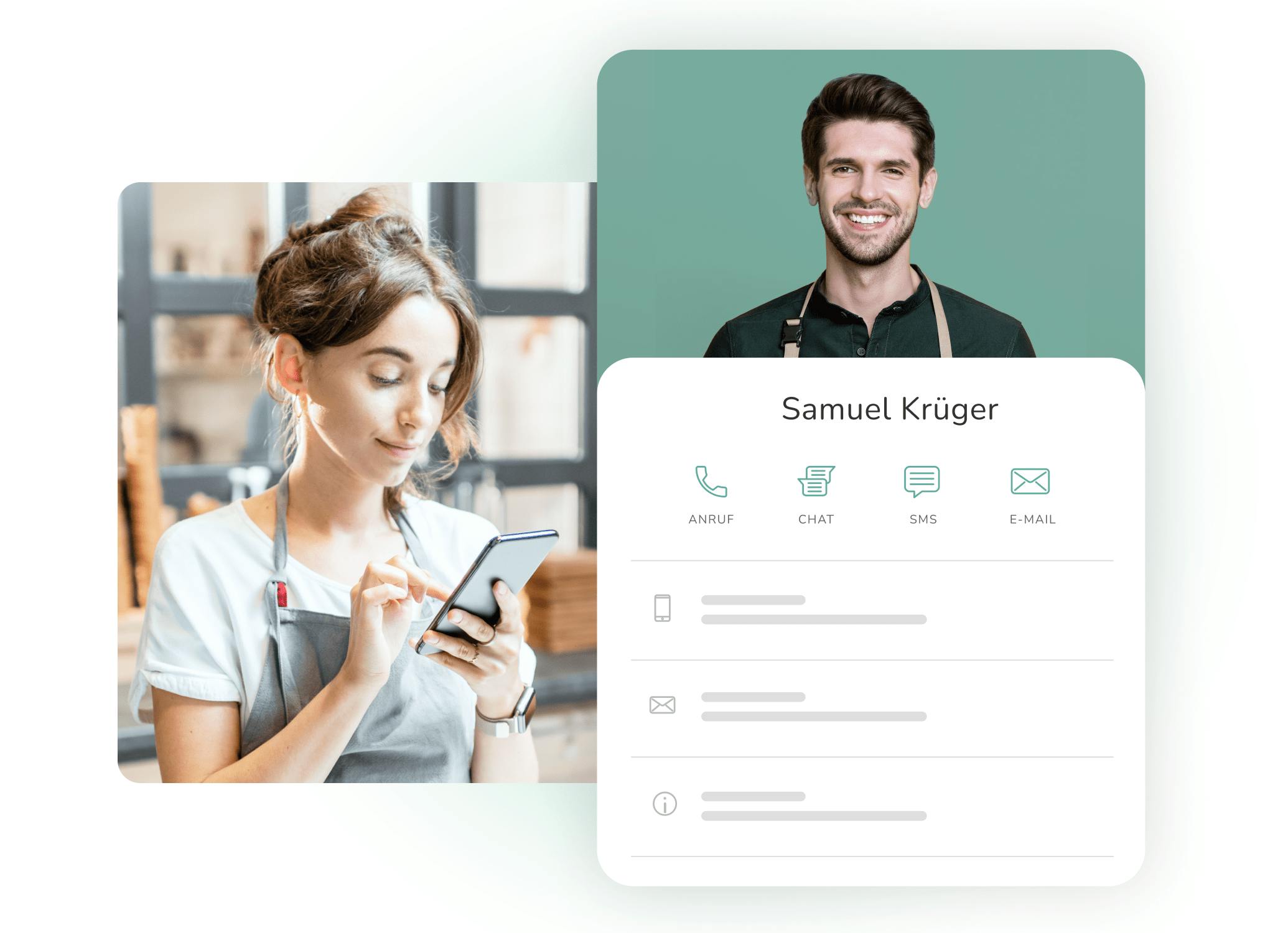 Kontaktiere Nutzer per E-Mail, SMS oder Telefon - direkt aus dem Verzeichnis heraus.