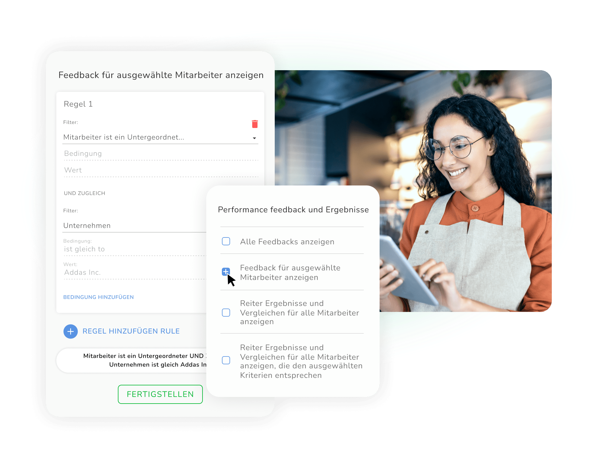 Performance Review Berechtigungen: Steuerung des Zugriffs auf Feedback und Ergebnisse.
