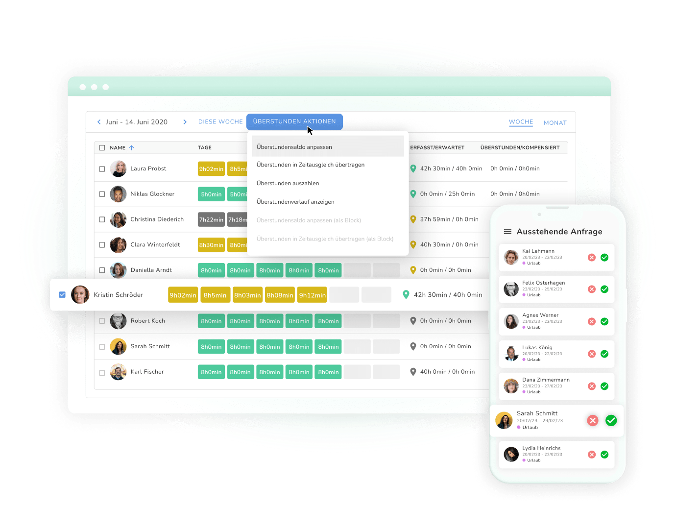 Arbeitszeitnachweise können von jedem Gerät aus problemlos genehmigt werden.