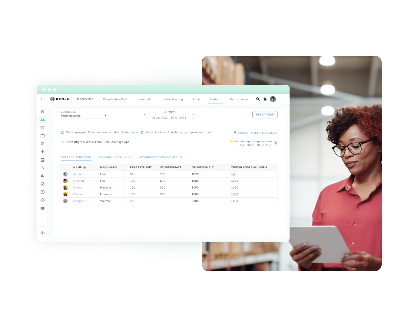 Kenjos neue Lohndatenintegration für DATEV ermöglicht Dir eine schnelle wie sorgenfreie Verwaltung Deiner Gehaltsabrechnungen.