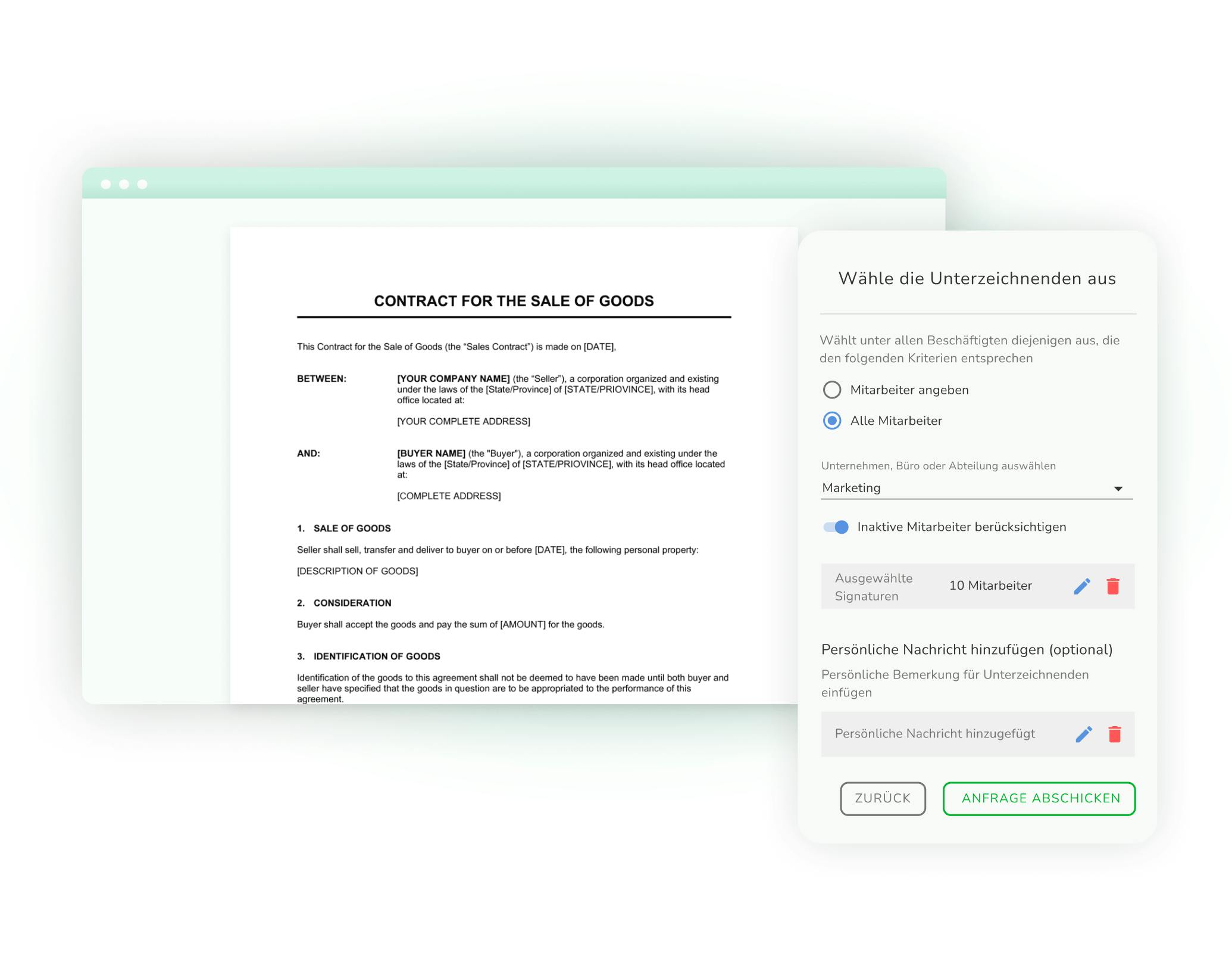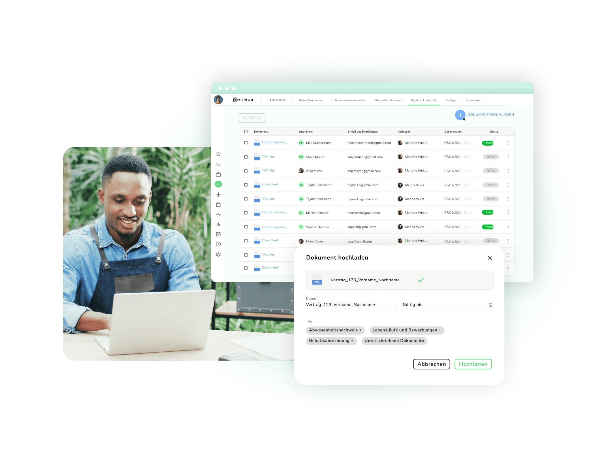Elektronische Signatur unter Verträgen mit neuen Mitarbeitenden.