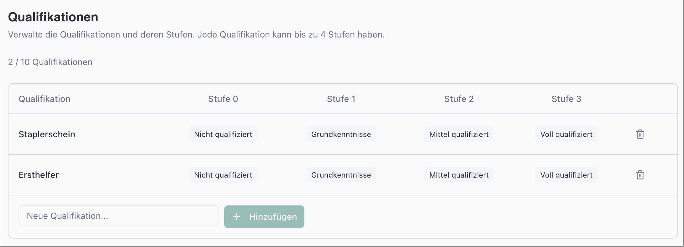 Hier trägst Du den tatsächlichen Qualifikationsstand der Mitarbeitenden ein.