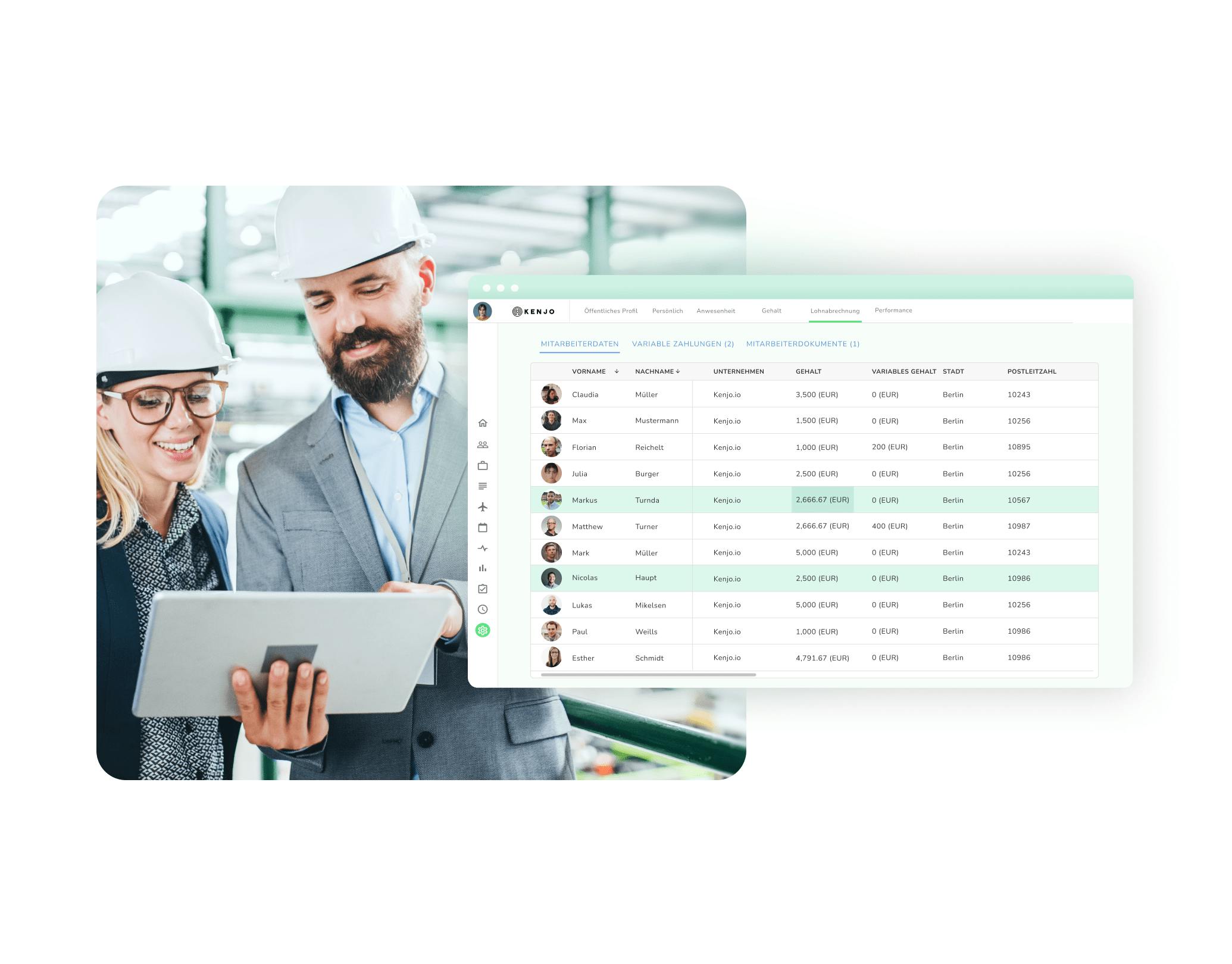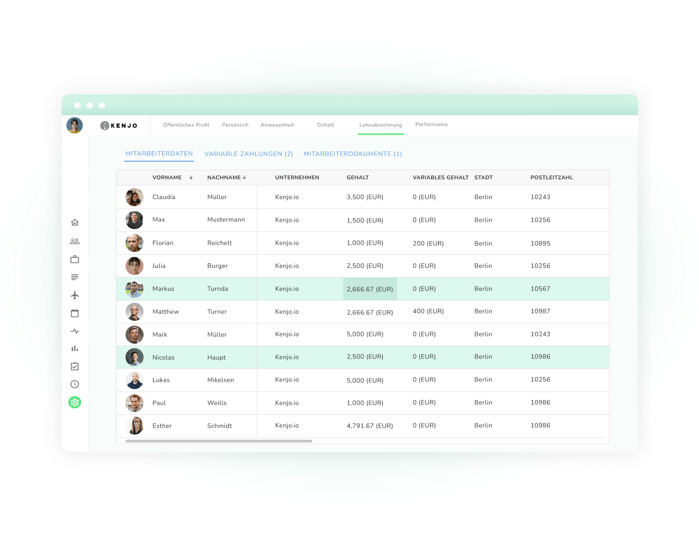 Kenjos Lohnbuchhaltungssoftware automatisiert die Gehaltsberechnung für verschiedene Mitarbeiterverträge und Arbeitszeiten, erleichtert die Verwaltung von Lohnabrechnungen und ermöglicht einen schnellen Versand an Mitarbeiter.