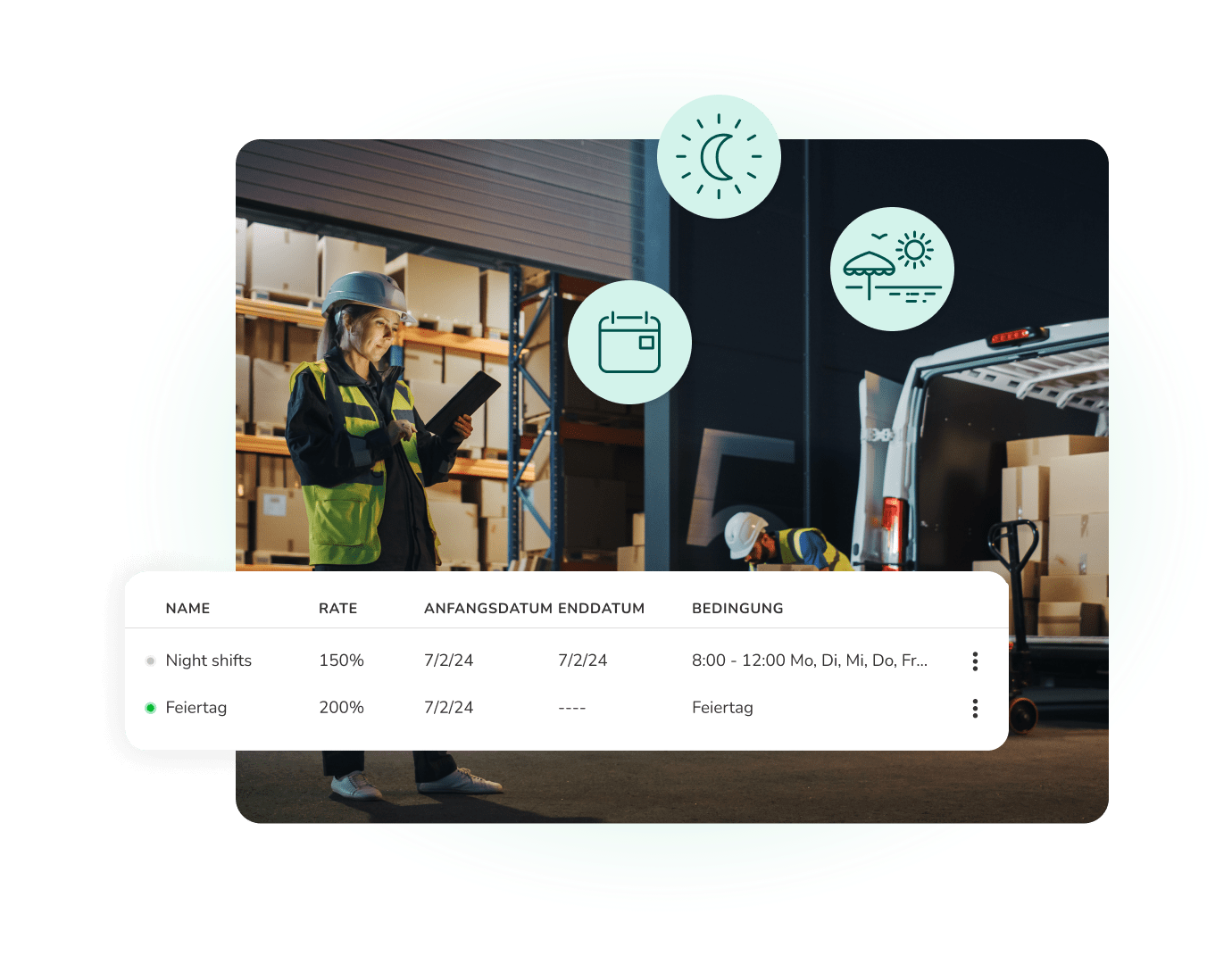 Einhaltung gesetzlicher Vorschriften: Zuschläge für Nacht-, Wochenend- und Feiertagsarbeit werden automatisch berechnet.