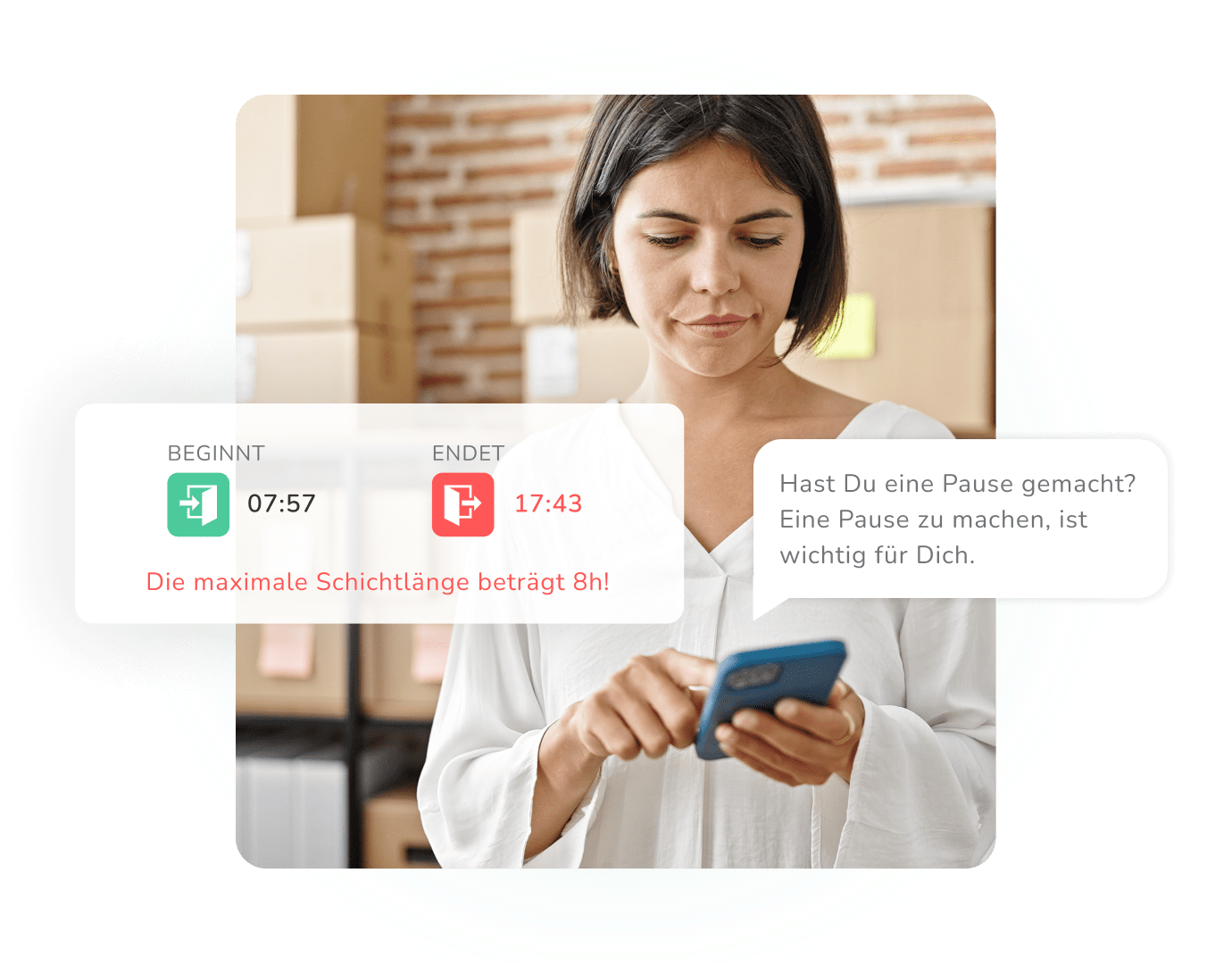 Pausenerinnerung aktivieren: Mitarbeiter werden bei Überschreitung an Pausen erinnert.