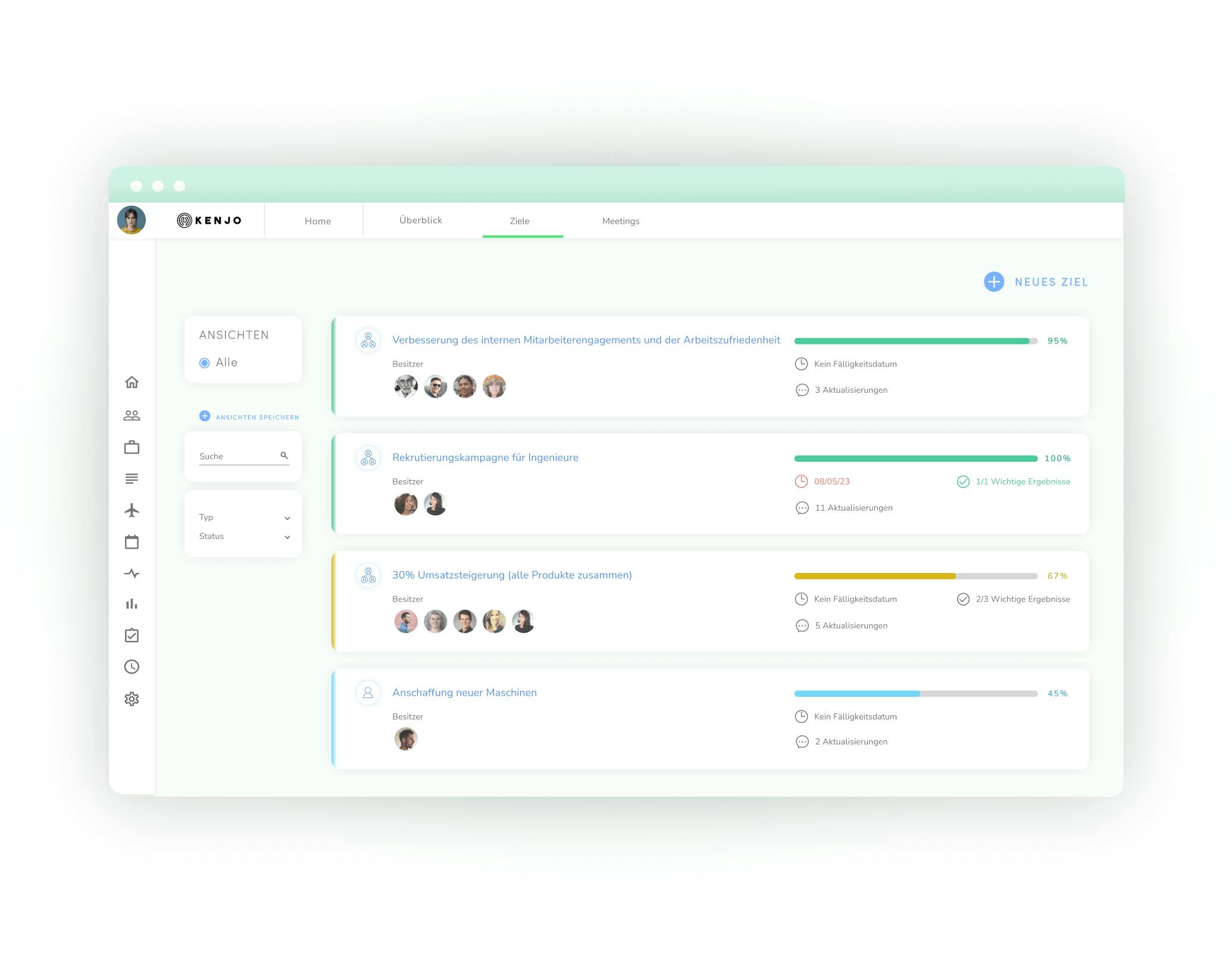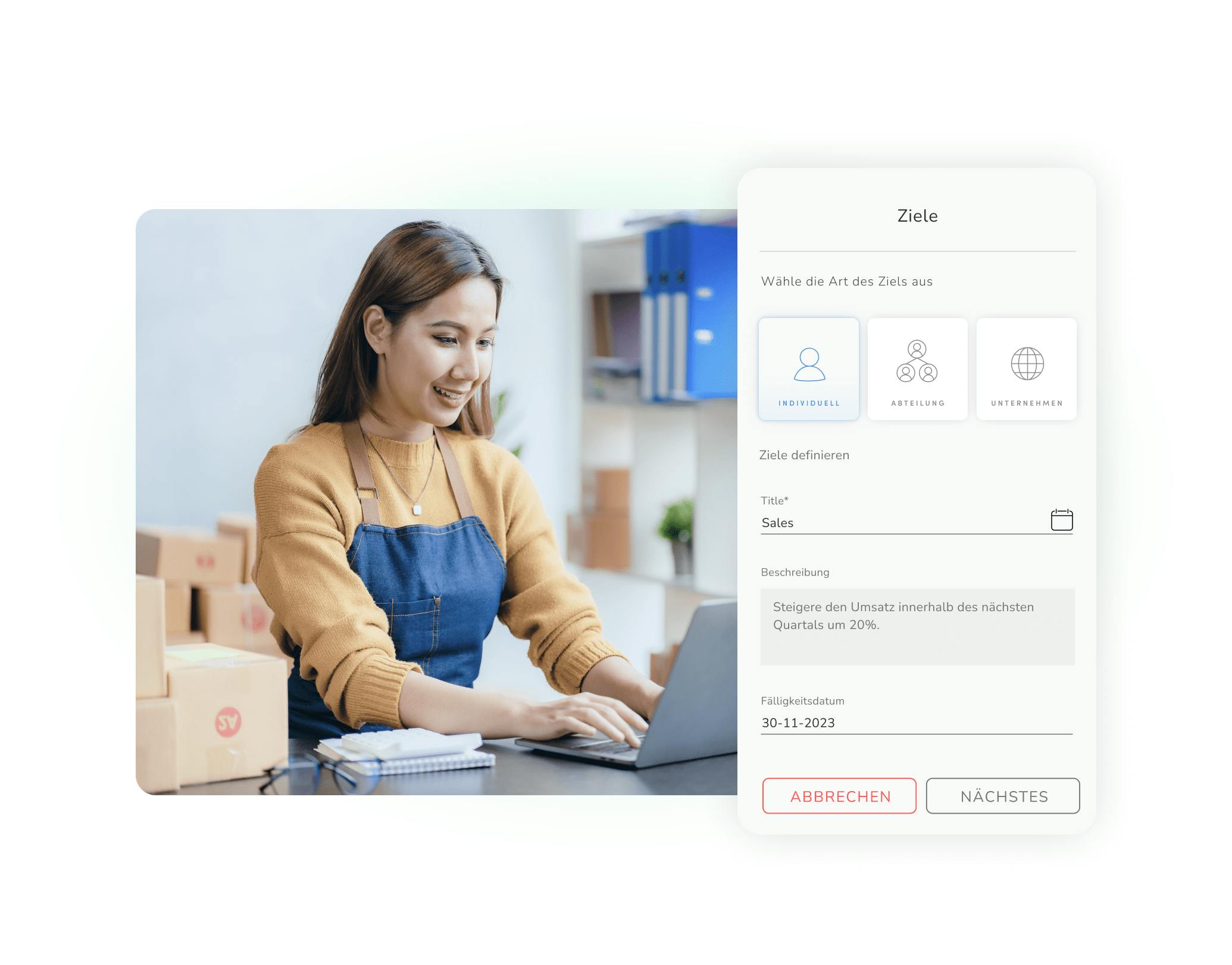 Lege individuelle, abteilungs- und unternehmensbezogene Ziele fest.