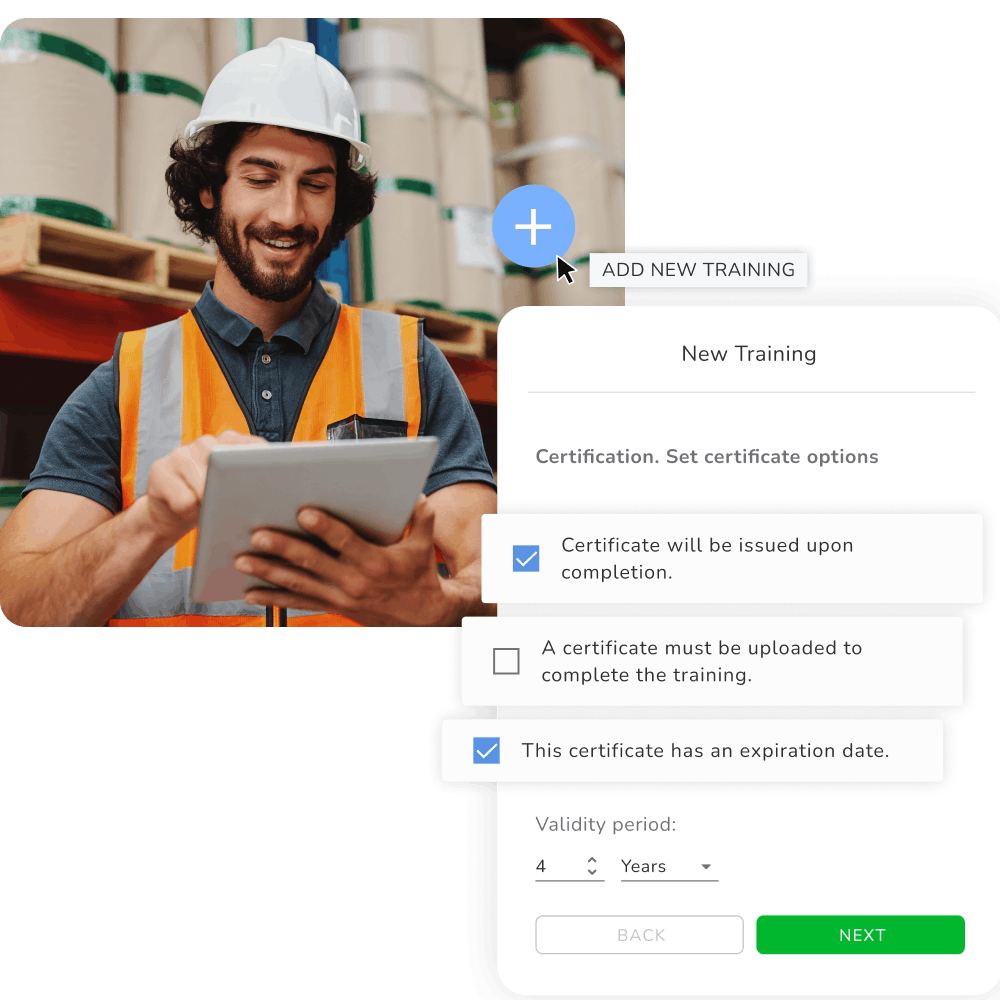 Build your own course catalogue, assign tasks and track completions – so your team stays qualified and compliant without the spreadsheet chaos.
