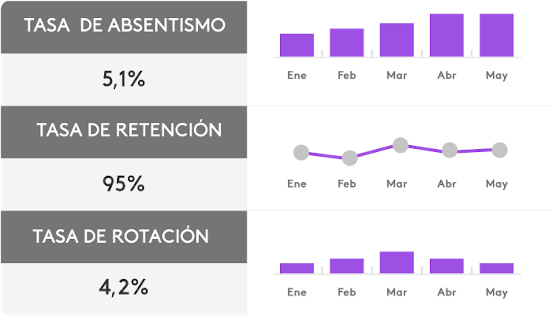 Este KPI mide el porcentaje de horas pactadas que no se llegan a cumplir por cualquier tipo de ausencia (justificadas o no). Se calcula dividiendo el total de horas no trabajadas entre el total. Reducir el absentismo laboral es uno de las preocupaciones de todo departamento de RR. HH. pero para ello es necesario partir de un dato.