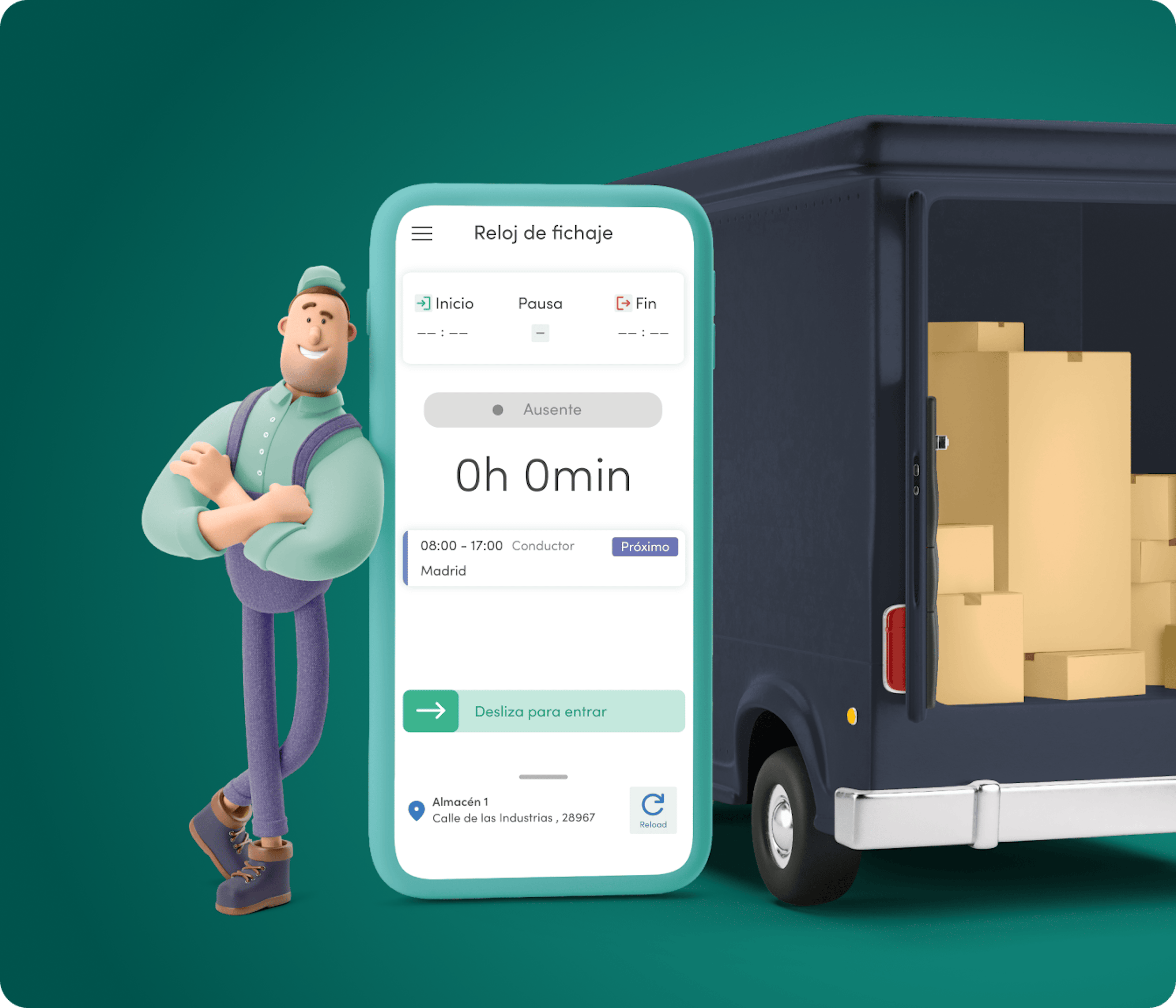 Los conductores fichan desde su móvil o desde un terminal en la nave. Tú puedes ver en tiempo real quién ha fichado y desde dónde. Sin papeles ni persecuciones.