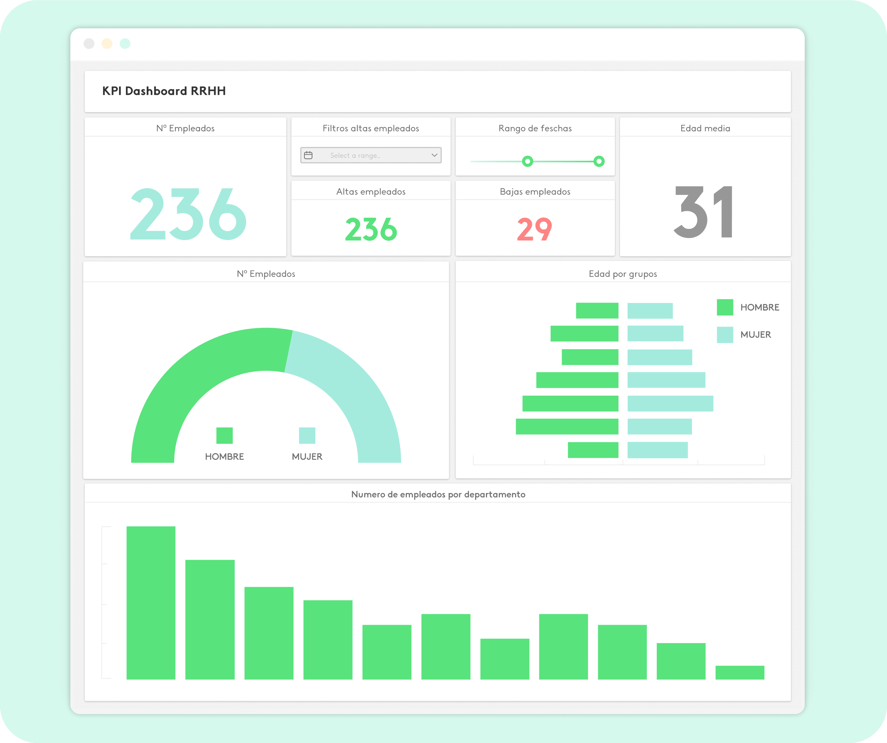 Haz un seguimiento de los ratios más importantes: nuevas contrataciones, tasas de salida, salario medio, comparación de vacaciones y días de enfermedad,...