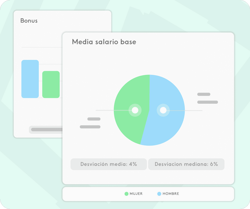 Obtén gráficas y métricas con los porcentajes de retribución salarial entre hombres y mujeres con un mismo puesto de trabajo.