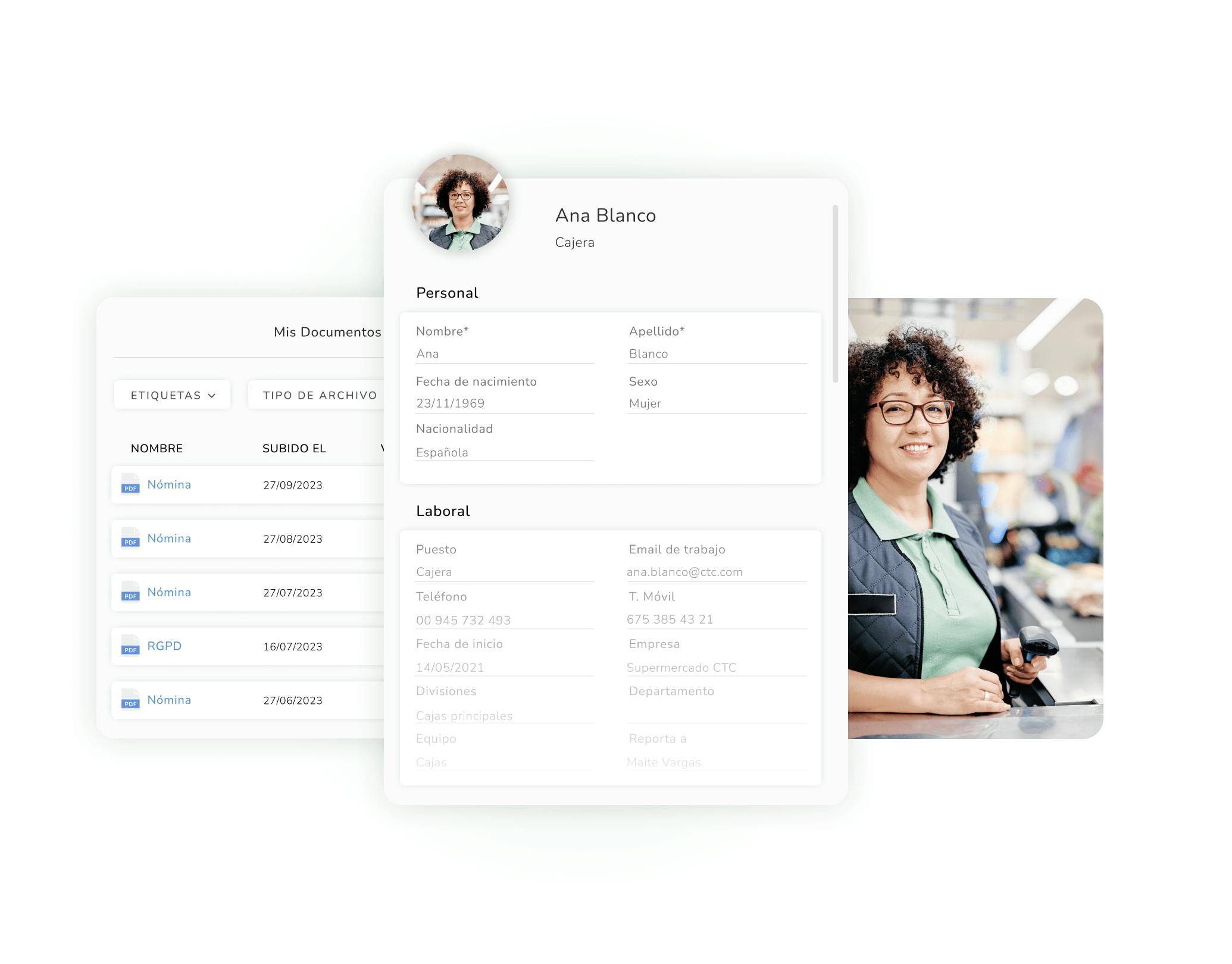 La información del personal de tu empresa se almacena en un sólo espacio y de forma organizada.