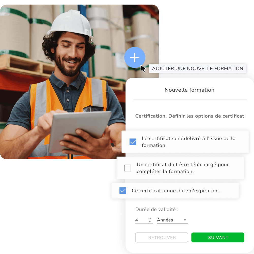 Créez votre propre catalogue de formations, assignez des tâches et suivez les validations – sans le chaos des feuilles Excel.