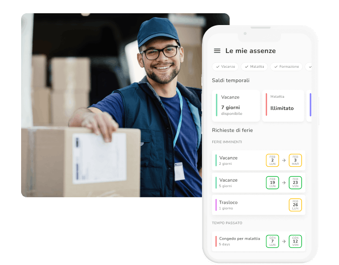 Scopri in tempo reale chi è presente, assente o in ritardo. La vista live di check-in e richieste di ferie ti aiuta a gestire le operazioni quotidiane.