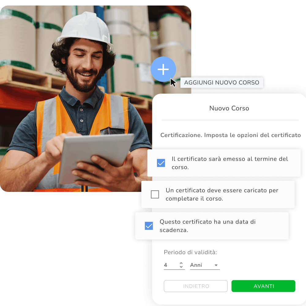 Tieni traccia di formazioni interne ed esterne, certificati e scadenze da un’unica vista.